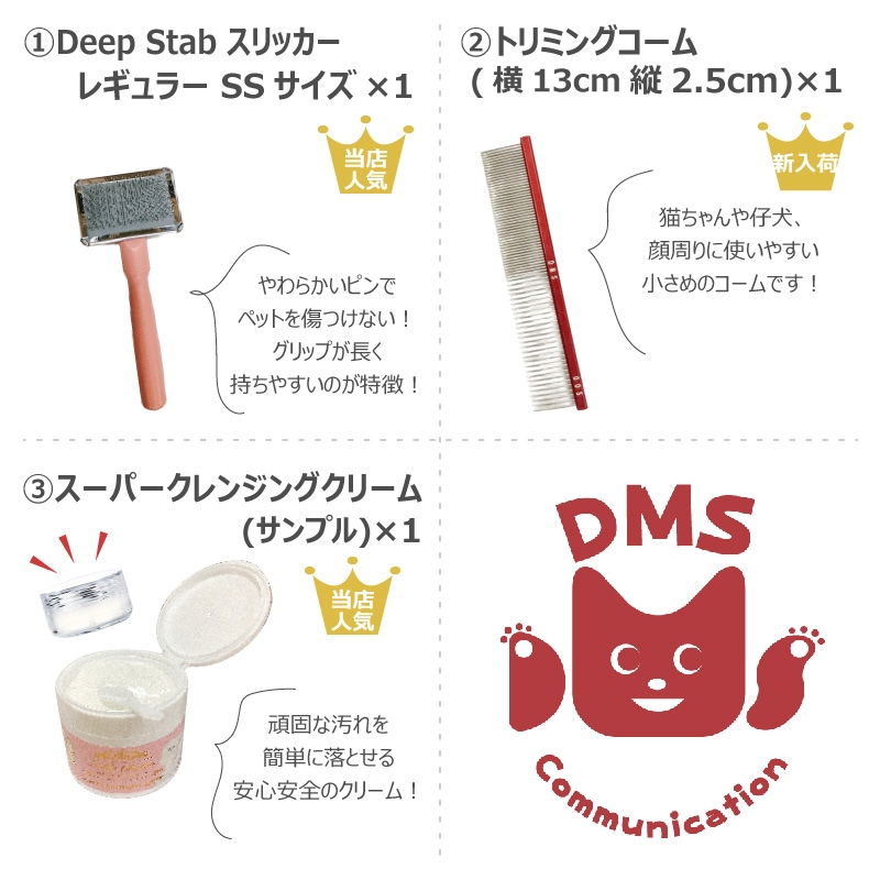 トップ > トリミング用品 > コーム > 【売れ筋】【目玉商品】【メール便送料無料】トリミング用品 お試し3点セット スリッカーブラシ 赤コーム No.5 クレンジングクリーム ペット用 犬 猫 まとめ買い
